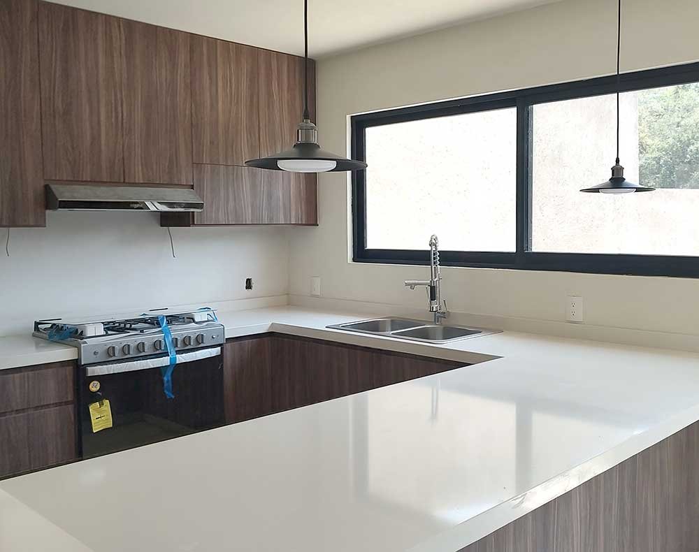 La segunda residencia se encuentra en proceso de construcción y estará lista en aproximadamente 5 meses. Diseñada con 215 m² distribuidos en dos niveles, cuenta con 3 recámaras —cada una con baño completo—, sala-comedor con gran iluminación natural, cocina integral equipada con cubierta de cuarzo en cascada, cuarto de lavado y dos cajones de estacionamiento.